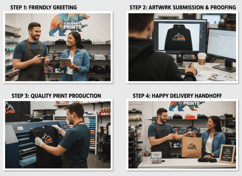 If you’ve never ordered custom apparel before, you might wonder what the process looks like. Ordering custom apparel Calgary customers love is easy with DTG Printing Corp. We guide you from your first idea to the moment you receive your finished shirts, hoodies, or hats. Here’s what you can expect when you choose us.